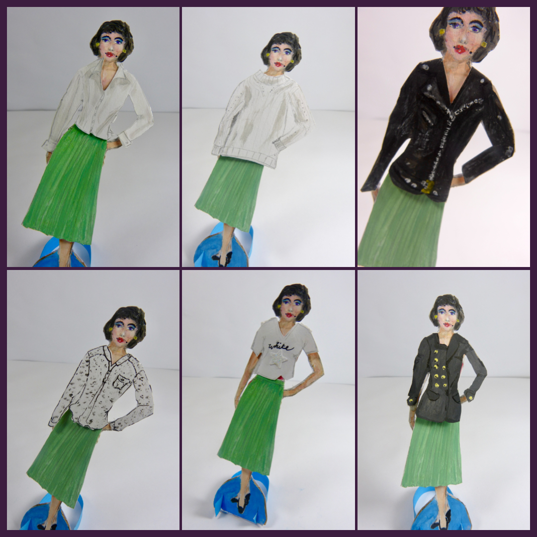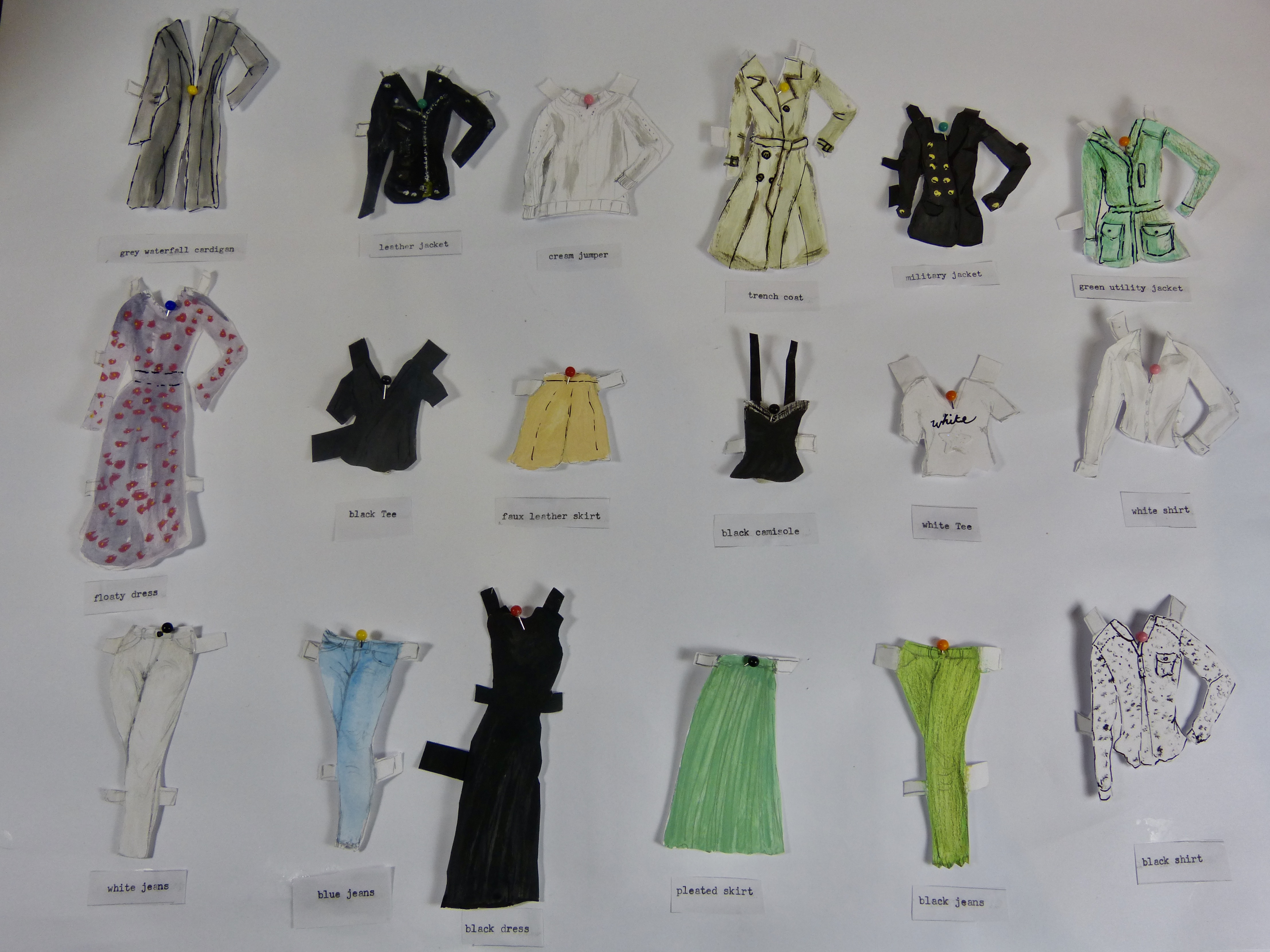 Taking three key items from my capsule wardrobe and a paper doll Elizabeth Taylor (who kindly agreed to model as I am little old, chunky, shy) here’s how the whole thing blends seamlessly together.
